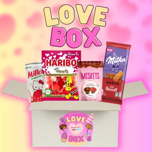 Love Mystery Box to box niespodzianka z produktami z naszego sklepu Słodyczowo w walentynkowym klimacie! W środku znajdziecie słone i słodkie produkty oraz napój. Box zawiera produkty obecnie dostępne w naszym sklepie ze wszystkich kategorii.