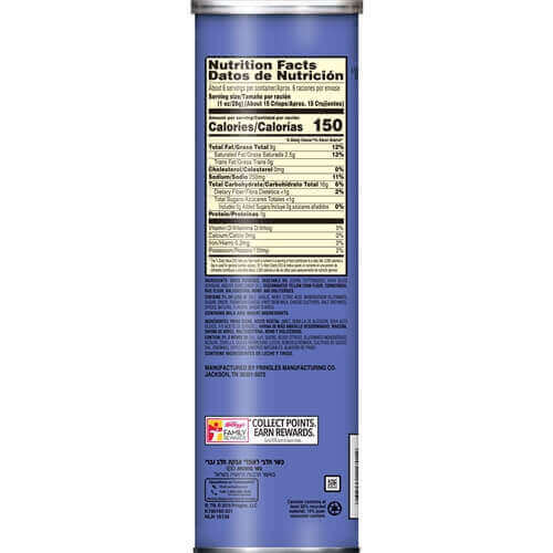 Skład: Suszone ziemniaki, olej roślinny (kukurydza, nasiona bawełny, sojowy o wysokiej zawartości kwasu oleinowego i / lub olej słonecznikowy), kiełkowana żółta mąka kukurydziana, skrobia kukurydziana, mąka ryżowa, maltodekstryna, mono- i diglicerydy. Zawierają 2% lub mniej soli, czosnku, serwatki, kwas cytrynowy, glutaminian sodu, cukier, cebula, parmezan (mleko półtłuste, kultury serowe, sól, enzymy), przyprawy, naturalne aromaty, skrobia pszenna.