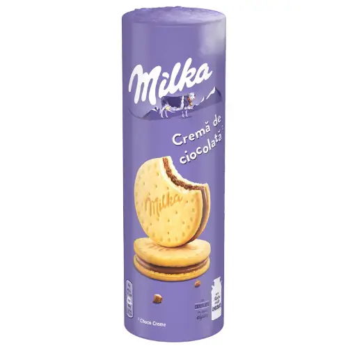 Milka Choco Creme to ciasteczka z kremem czekoladowym w środku. Czekoladowa przyjemność zamknięta w kruchym ciasteczku Milka. Ciasteczka Milka Choco Creme przyjechały do nas z Bułgarii, aby doskonale sprawdzić się jako Twoja słodka przekąska z czekoladą w trakcie dnia.