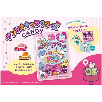 Cukierki Sanrio Candy to pojedynczo zapakowane owocowe cukierki w owocowych smakach. Znajdziesz tam takie owocowe smaki jak: mandarynka i jabłko. Całość schowana jest w pięknym opakowaniu z postaciami Sanrio.