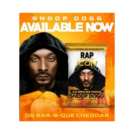 Chipsy ziemniaczane o smaku BBQ i sera cheddar z wizerunkiem rapera Snoop Dogg na opakowaniu