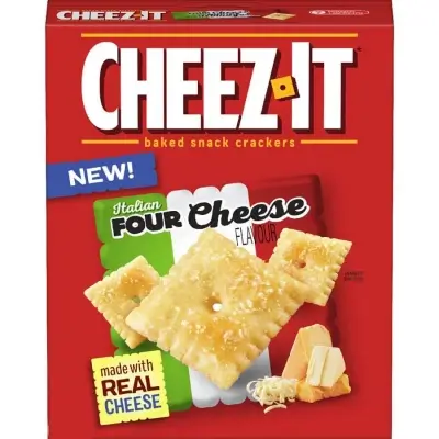 Włoskie sery od lat są cenione nawet przez największych smakoszy słonych przekąsek. Cheez It Four Cheese to połączenie nie dwóch, nie trzech, a aż czterech różnych włoskich serów, które nadają niezastąpionego aromatu krakersom firmy Kellogg’s. Jeden krakers Cheez It Four Cheese to połączenie czterech włoskich serów, takich jak: Romano, Parmesan, Mozzarella oraz Asiago.