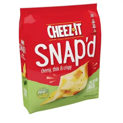 Cheez It Snap'd Jalapeno Jack to pieczone krakersy wykonane z połączenia smaków prawdziwego sera i pikantnej papryczki jalapeño. Cienkie, chrupiące i prawdziwie serowe, ponieważ krakersy są zapiekane i posypane serem z wierzchu z lekko ostrym akcentem jalapeno. A do tego krakersy Cheez It Snap'd Jalapeno Jack znajdziesz teraz w mniejszej, 62g paczce, dzięki czemu możesz spróbować kilku smaków i wybrać swój ulubiony :).